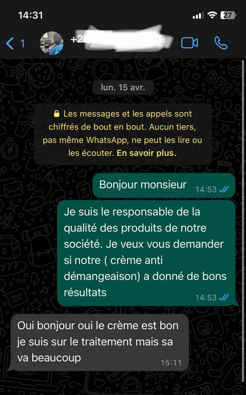 Notre crème anti-démangeaisons & antibactérienne a été conçue pour apaiser instantanément les irritations tout en protégeant activement votre peau contre les infections. Grâce à sa formule enrichie en agents naturels apaisants et antibactériens, elle calme les sensations d'inconfort dès la première application.