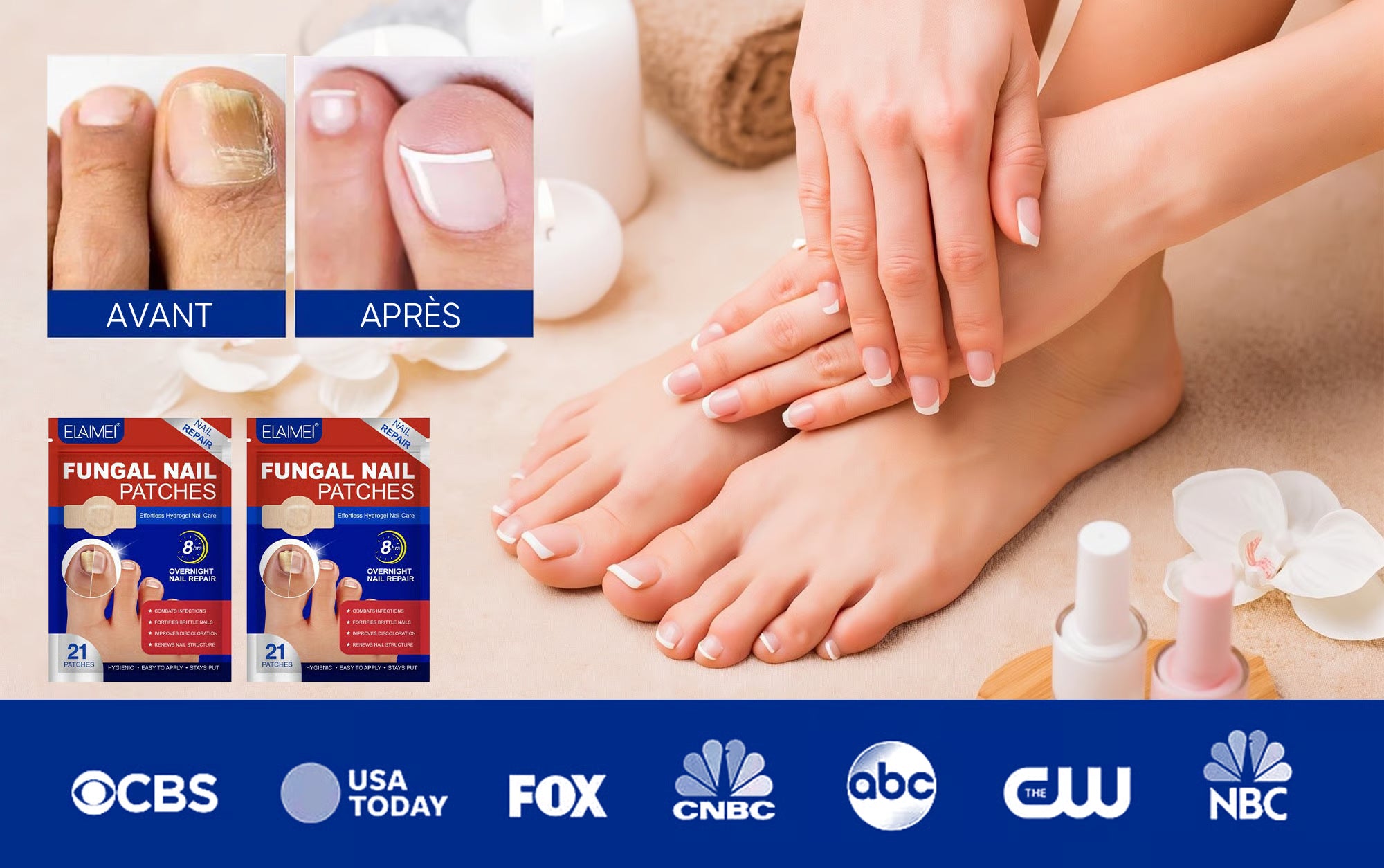 Il vous suffit de nettoyer la zone touchée, d’appliquer le patch et de le laisser agir. Discret et confortable, il peut être porté sous vos chaussettes ou chaussures, sans gêne. En quelques jours seulement, vous retrouvez des pieds nets, frais et en bonne santé.