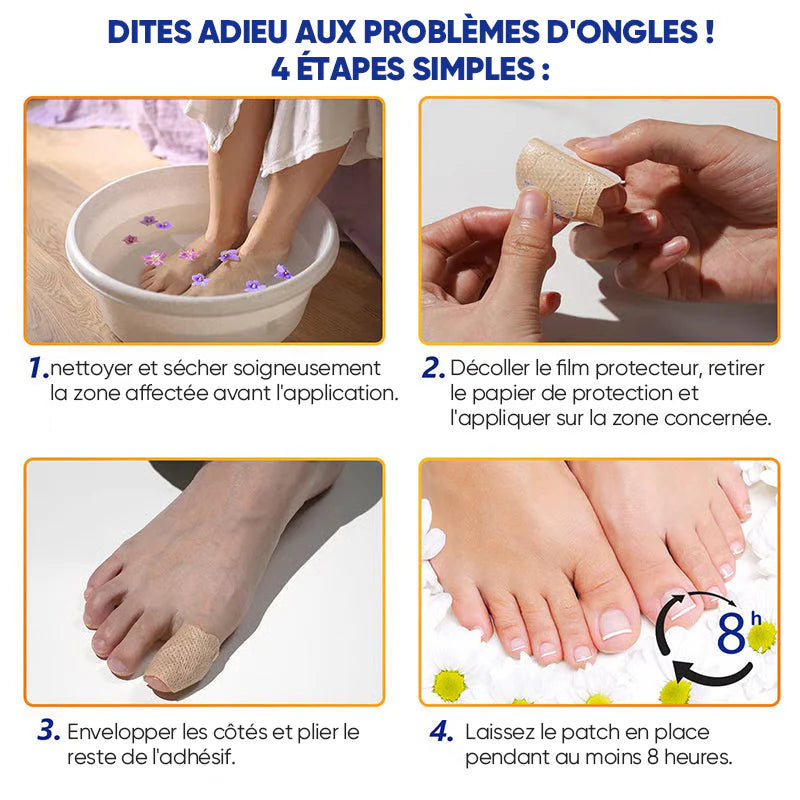 Il suffit d’appliquer le patch directement sur la zone concernée (ongle ou peau). Laissez agir toute la journée ou la nuit pour un maximum d’efficacité.